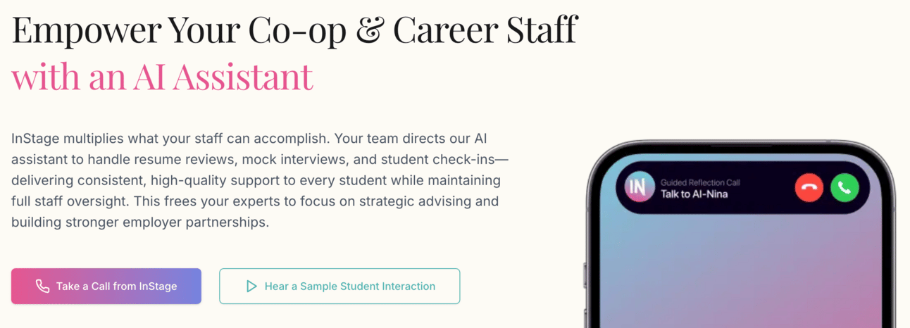 1 - Interview prep. Their AI would call the student and do a mock interview over the phone to help them practice and prepare the actual co-op interview and experience. Young people generally are terrible on the phone, so this makes a lot of sense.