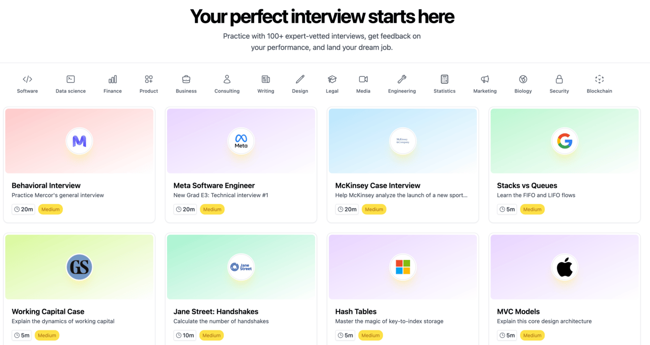 The reason I’m sharing this with you all is because of the free practice interviews they offer.
