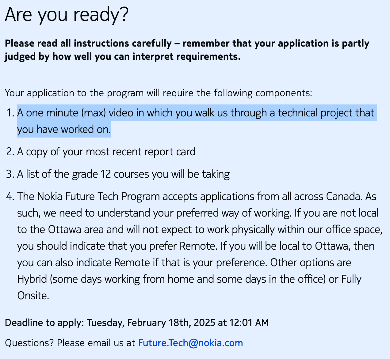 This is a actually really cool initiative. Nokia takes students who just finished grade 11, and gives them real working experience over the summer. It’s open to students from all across Canada, though those living in Ottawa get to attend in person.